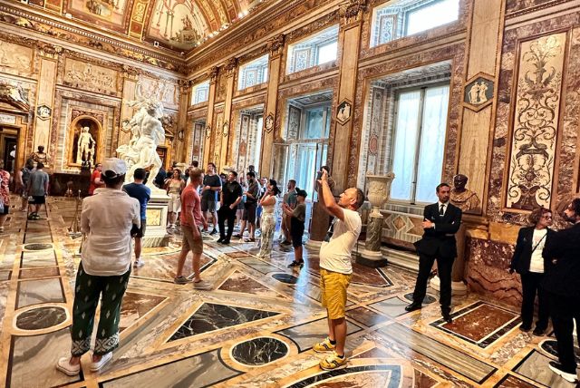 במוזיאון וילה בורגזה לא ניתן לנוע בחופש מוחלט. יש מסלול מוגדר, זרימה מבוקרת ולעיתים גם אזורים שאי אפשר לשהות בהם זמן רב. זהו חלק מהשיטה.