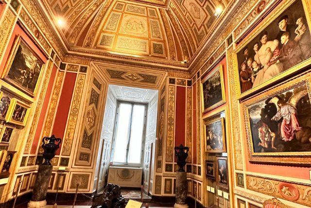 בניגוד למוזיאונים מודרניים עם חללים ניטרליים, כאן האמנות חיה בתוך ארמון. הקירות, התקרות, הרצפות – הכל חלק מהחוויה.