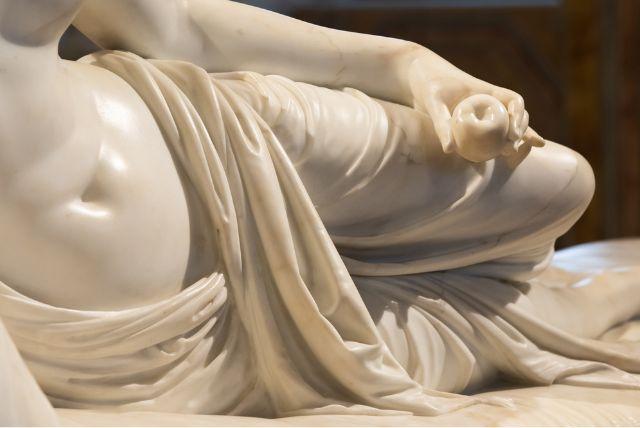 השיש הלבן שימש את קנובה לא רק כחומר גלם, אלא ככלי רעיוני. ברומא, שיש לבן סימל טוהר, קלאסיקה והמשכיות עם העבר העתיק. הבחירה בו העניקה ליצירה לגיטימציה חזותית מיידית.