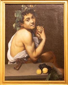 אחת היצירות המוקדמות המוצגות בקומה השנייה היא "נער עם סל פירות". במבט ראשון מדובר בציור ריאליסטי של צעיר המחזיק סל גדוש בפירות בשלים, אך ההתבוננות הקרובה חושפת עומק מפתיע – הפירות אינם מושלמים. יש בהם כתמים, ריקבון עדין ועלים קמלים.