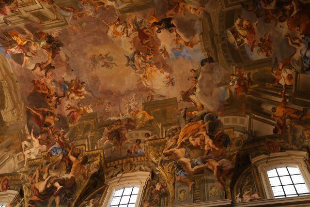 רומא של המאה ה-17 הייתה עיר תיאטרלית במהותה, והתקרות משקפות את רוח התקופה. הדמויות אינן עומדות בשקט אלא נעות, מתעופפות, מתפתלות בעננים ובווילונות מצוירים. כל סצנה נראית כמו רגע קפוא מתוך דרמה גדולה יותר.