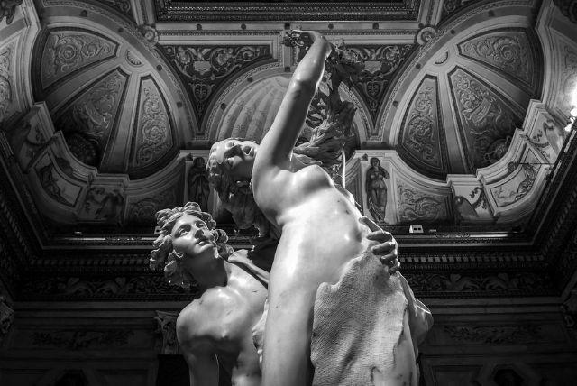 הקומה הראשונה בגלריה בורגזה (Galleria Borghese) היא חוויה תלת ממדית. הפסלים של ברניני אינם רק אובייקטים – הם תנועה קפואה באבן. כדי להבין אותם באמת, יש להקיף, להתקרב, להתרחק ולבחון פרטים.