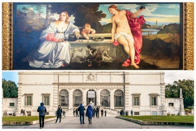 אוסף בורגזה כולל יצירות של קרוואג'ו, רפאל וברניני. בתוך ההיצע העצום הזה, "אהבה קדושה וארצית" בולטת. היא מייצגת את הרנסנס הוונציאני. היא מאזנת את הנטייה הרומית באוסף.